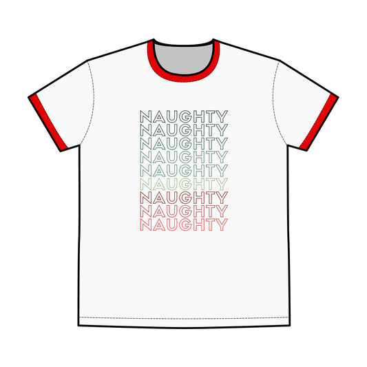 Holiday Naughty List Ringer Tee, Men's Christmas Party Shirt, Retro Style Xmas Tee, Festive Family Photo Top, Oregon Designed Shirt