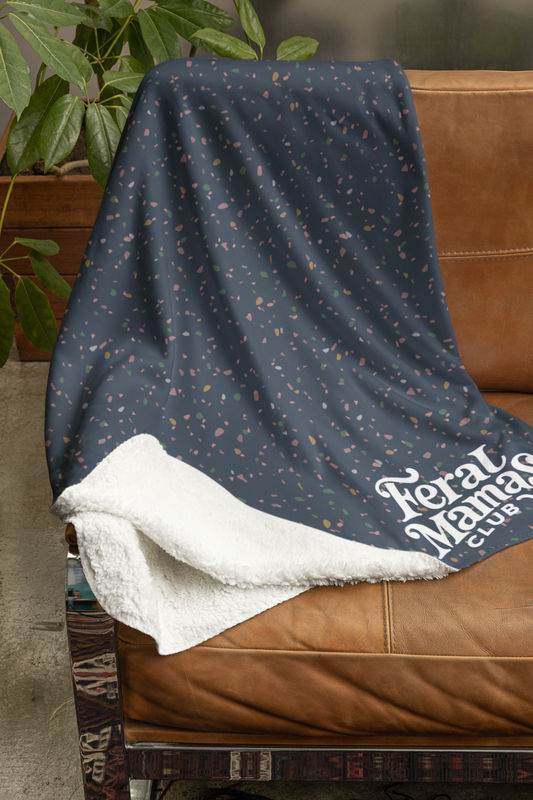 Fleece Sherpa Blanket - Feral Mamas Club Cozy Trendy Terrazzo Design, Rad Mom Gift, Cuddle Up Blanket, Reading Blanket, Home Decor Accent