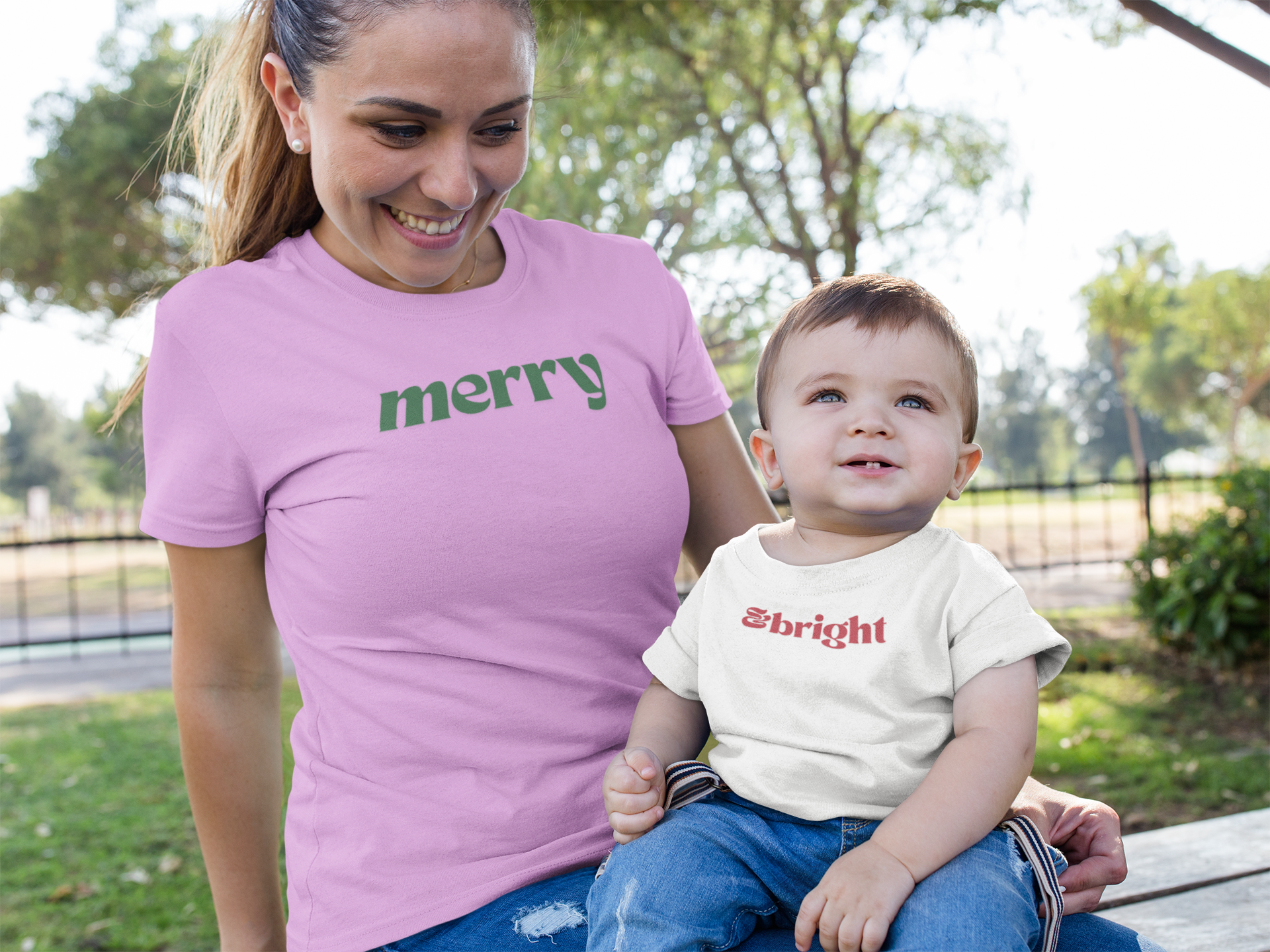 Matching "Mommy and Me" funny Christmas t-shirt and onesie to perk up your holiday spirits. Be 'Merry' while your babe is '&Bright'. Perfect for a festive and fun family holiday photoshoot or gathering. Ideal for mothers and their little ones celebrating Christmas together. (PLEASE NOTE: This listing is for the "Merry" T-shirt ONLY. Please see our "&Bright" Toddler T-shirt listing to complete your set!)